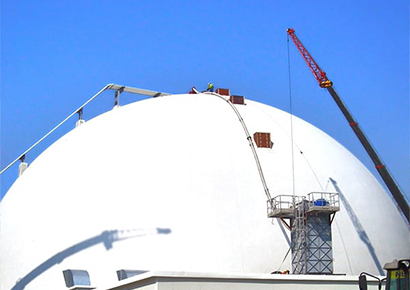 Monolithic dome for cool storage in power stations, maintaining optimal temperatures.