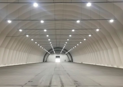 Large-scale air domes for warehousing and distribution centers, providing protected storage for goods and inventory.
