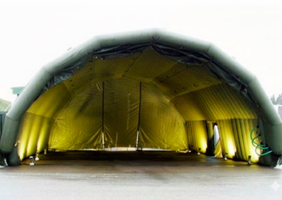 Air domes for military equipment storage, protecting vehicles and gear from weather and environmental damage.