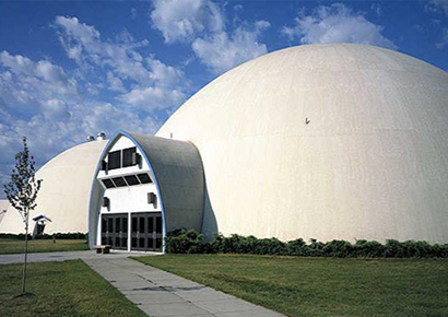 Comprehensive sports center in a monolithic dome for various athletic activities.
