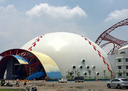 Monolithic dome for cool storage in power stations, maintaining optimal temperatures.