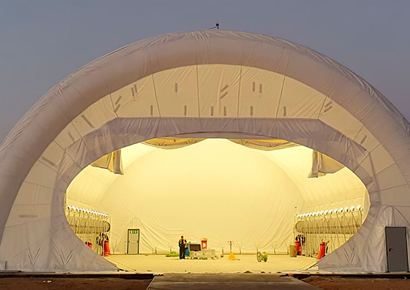 Large-scale air domes for warehousing and distribution centers, providing protected storage for goods and inventory.