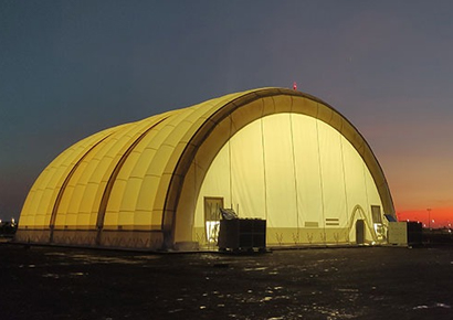 Air domes for storing heavy machinery, vehicles, and industrial equipment with weather protection and easy access.